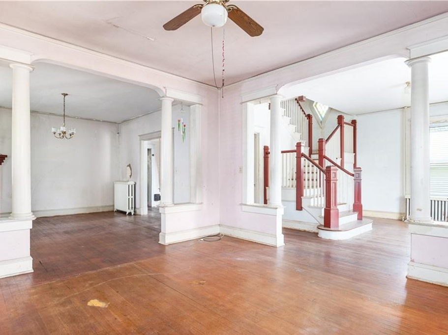 Solutions: Custom cabinetry, modern appliances, LVP flooring, HVAC, roofing change up stairs 3 bedrooms to 2 bedrooms and a master bath. Add a deck onto the rear of the property and refinish two garages with new roof siding and garage doors.