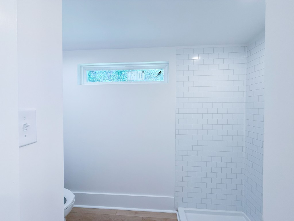 Some Materials: Ceramic tile from Floor and Decor, Custom Vanity, Sherman Williams paint.